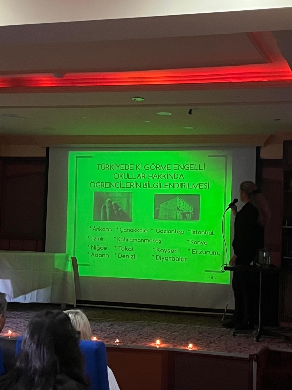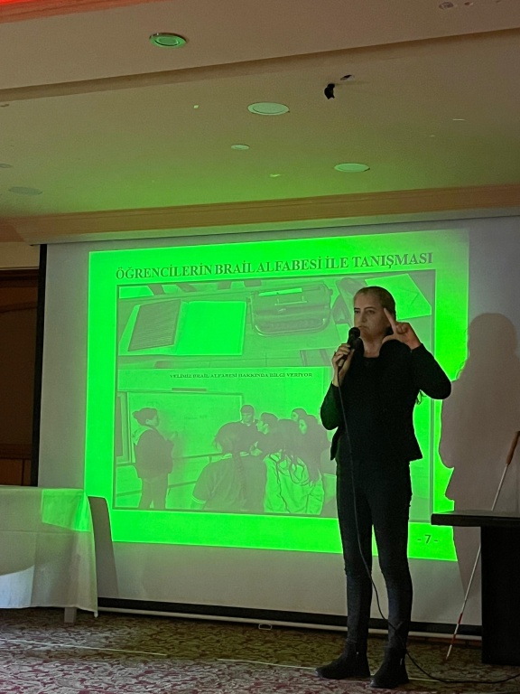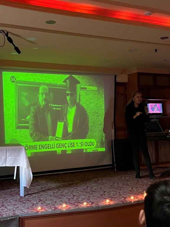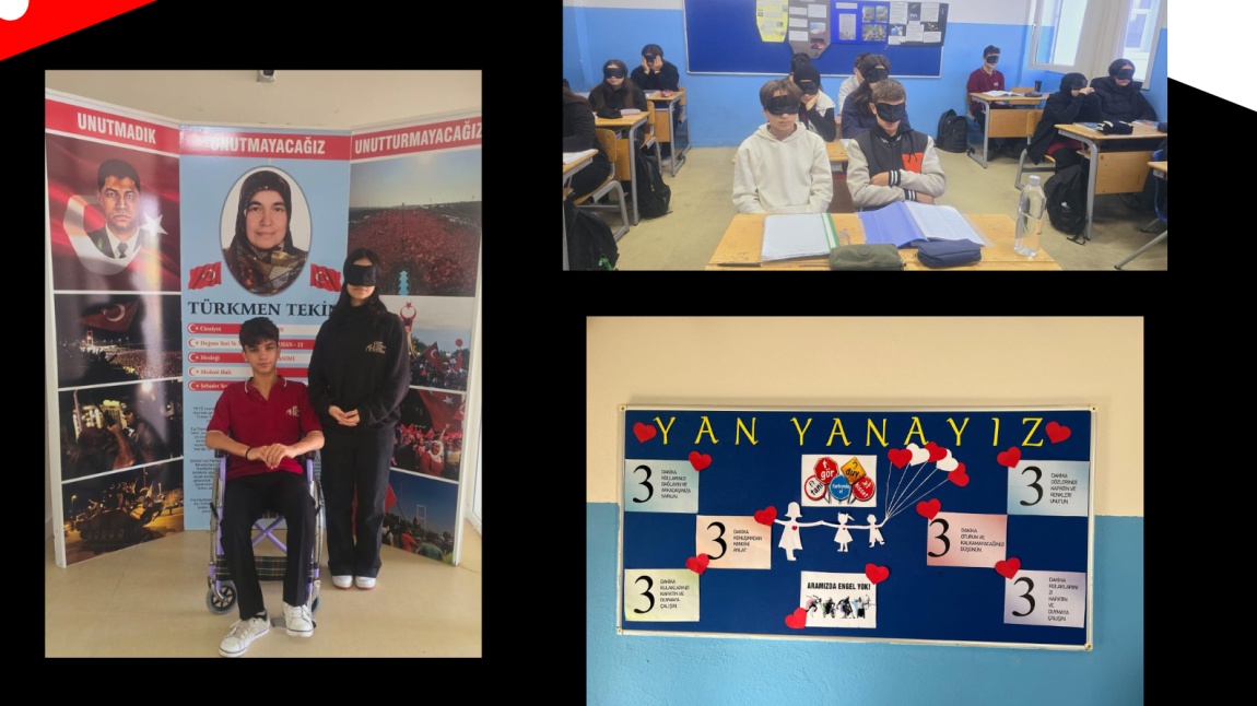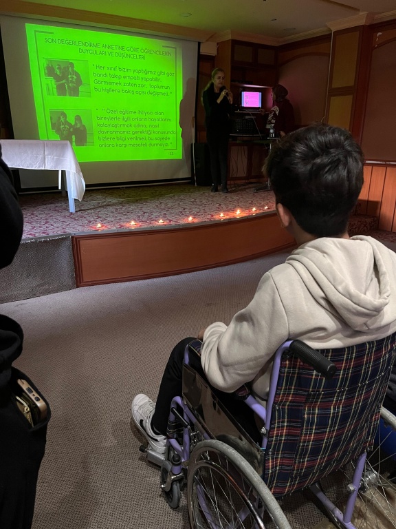 Etkinlik, Bodrum’da yaşayan görme engelli öğrenci Utku Dağdeviren’in başarı hikâyesinin paylaşılmasıyla başladı. Utku Dağdeviren’in azmi ve başarıları, öğrencilerimize ve katılımcılara ilham verdi. Ardından matematik öğretmenimiz Sevgi Şeremet Yıldırım, siyah göz bandı ve beyaz baston kullanarak görme engelli bir bireyin günlük yaşam zorluklarını canlandırdı. Bu etkileyici performans, katılımcılara empati duygusunu derinden hissettirdi.