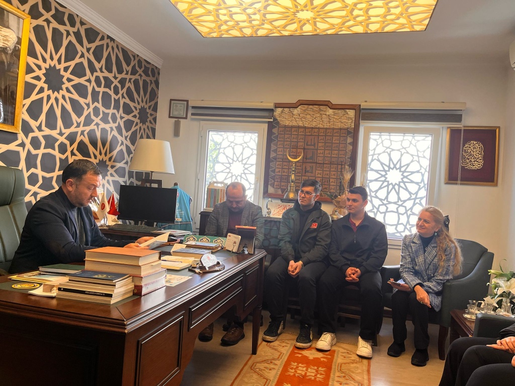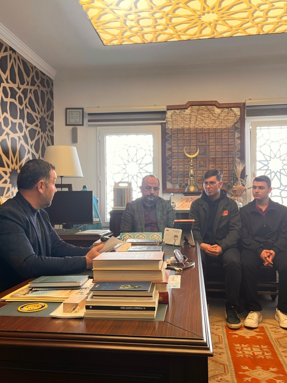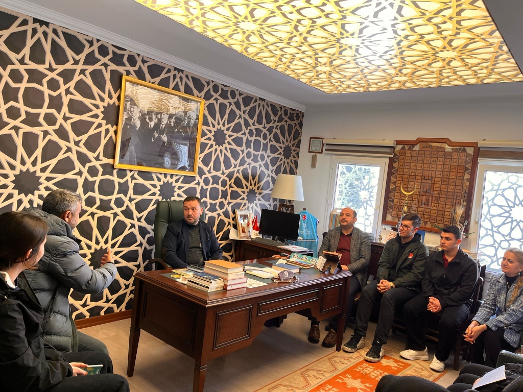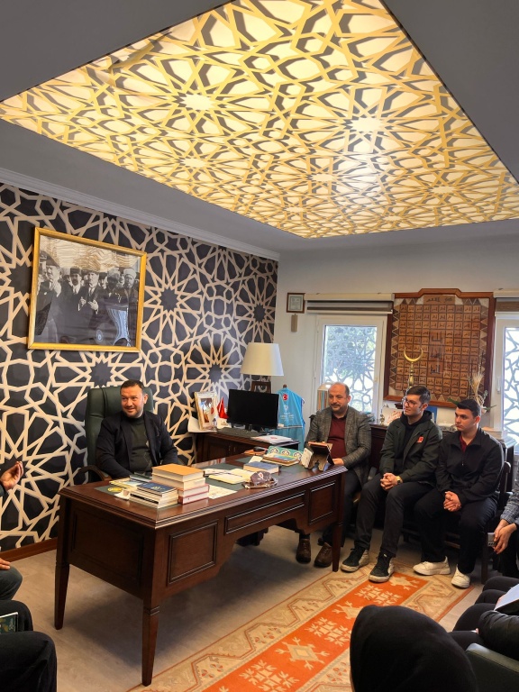 Bodrum Şehit Türkmen Tekin Anadolu İmam Hatip Lisemizin "Benimle Şükreder misin?" projesi kapsamında, Okul Müdürümüz Emin Geçin, proje yürütücülerimizden Matematik Öğretmenimiz Sevgi Şeremet Yıldırım ve Müzik Öğretmenimiz Sinan İşvaroğlu ile projede görev alan öğrencilerimiz, Bodrum İlçe Müftüsü İbrahim Kapancı'yı makamında ziyaret etti.