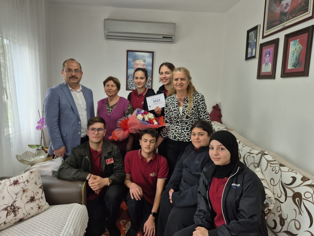 Okul müdürümüz Emin Geçin, proje yürütücüleri Sevgi Şeremet Yıldırım ve Sinan İşvaroğlu ile birlikte öğrencilerimizle beraber, 'Benimle Şükreder misin?' projesi kapsamında Turgutreis’te yaşayan Şehit Er Barış Akay’ın ailesini evinde ziyaret ederek anlamlı bir vefa ziyareti gerçekleştirdi.