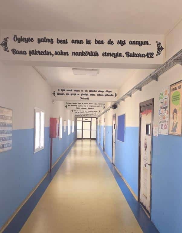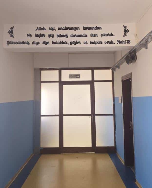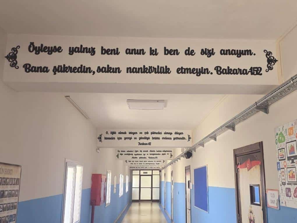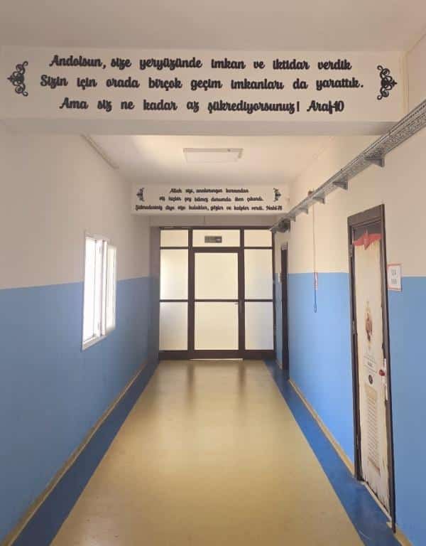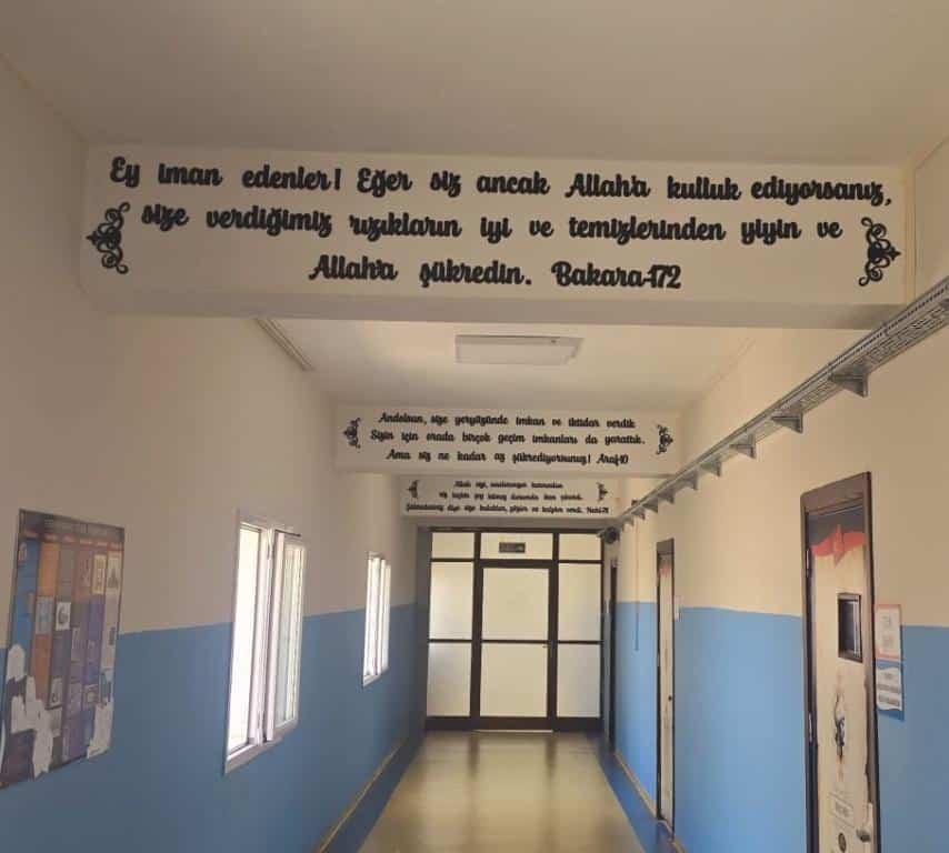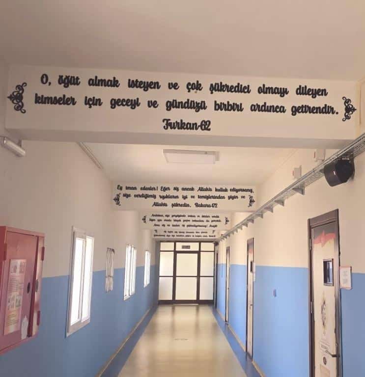 Kur’an-ı Kerim’de geçen ve insanın sahip olduğu nimetleri fark ederek Allah’a şükretmesini konu alan çeşitli ayetler görsel panolar hâlinde hazırlanarak okul koridorunda sergilenmiştir. Bu çalışma ile öğrencilerin, şükür kavramını ayetler ışığında daha derinlemesine anlamaları ve gündelik hayatlarında bu bilinci taşımaları amaçlanmıştır.