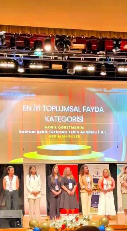 Törende okulumuz, STEM projeleri kapsamında hazırladığı "Mobil Öğretmenim" adlı projesiyle "En İyi Toplumsal Fayda" kategorisinde ödüle layık görüldü. Projenin danışman öğretmeni Neriman Güler ve proje ekibi öğrencilerimiz İsmail Öztürk ile Talha Duhan Arık’a ödülleri törenle takdim edildi.