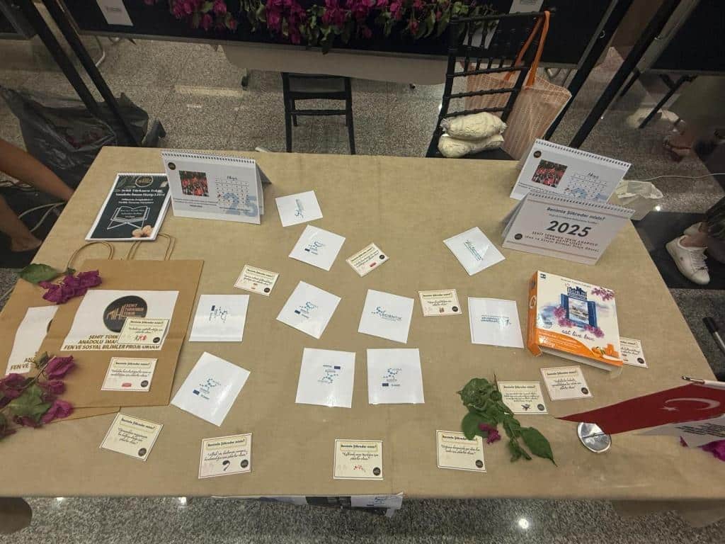 Ayrıca, proje standımızda "Benimle Şükreder misin?" projesi kapsamında hazırlanan proje takvimi ve şükür kartları da tanıtıldı. Şükür kartları gelen misafirlerimize hediye edilerek projemizin yaygınlaştırılmasına katkı sağlandı.